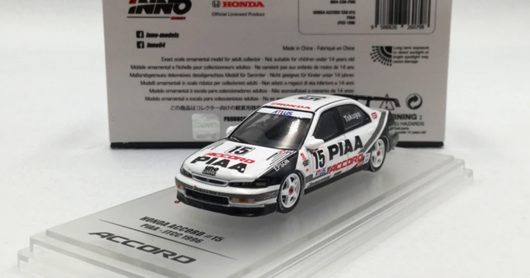 Brand New In Box 1/64 INNO64 Honda Accord #15 PIAA JTCC 1996 Diecast Car Model