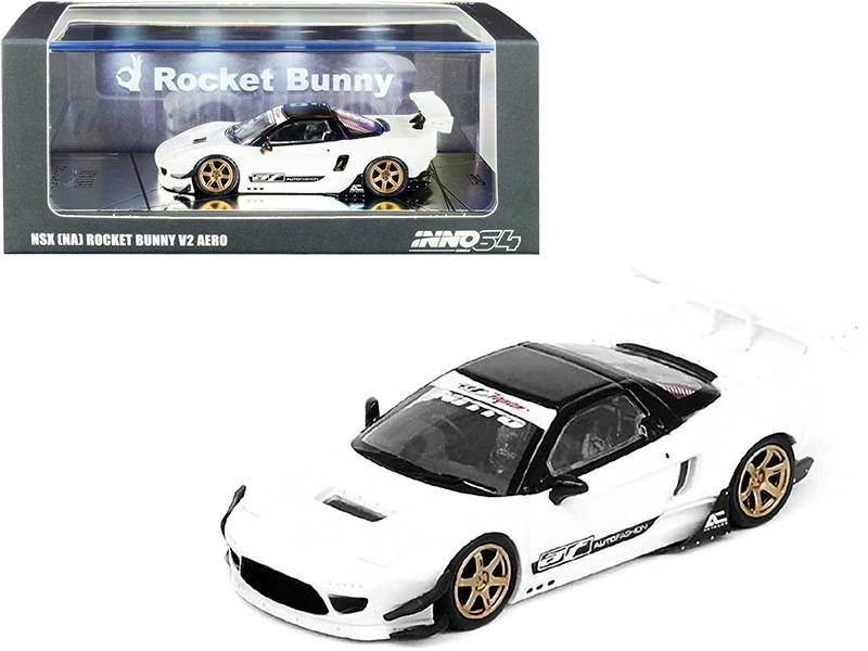 - Brand new 1/64 scale diecast car model of NSX (NA) Rocket Bunny V2 Aero RHD (Right Hand Drive) White with Black Top “Auto Fashion” die cast model car by Inno Models.