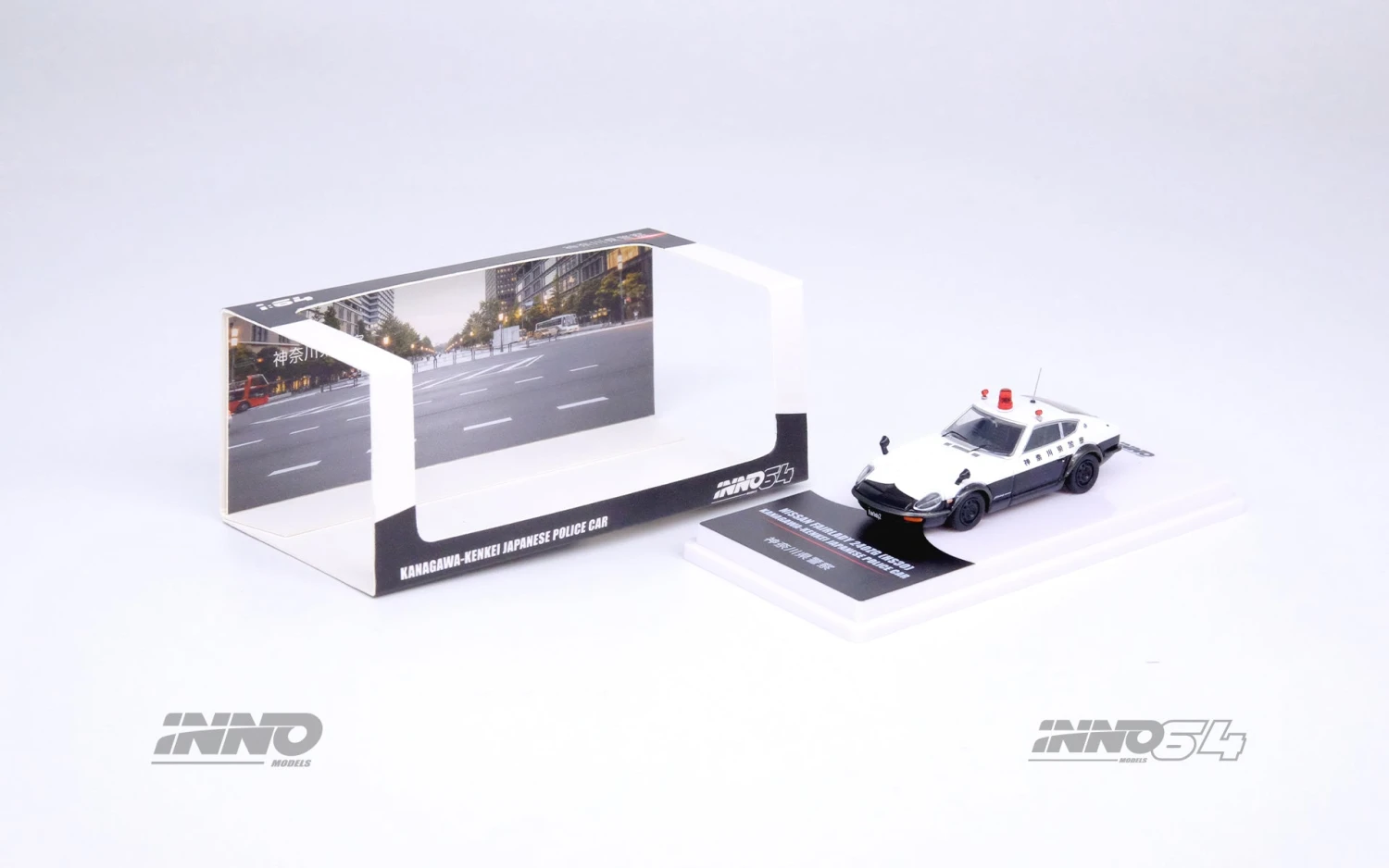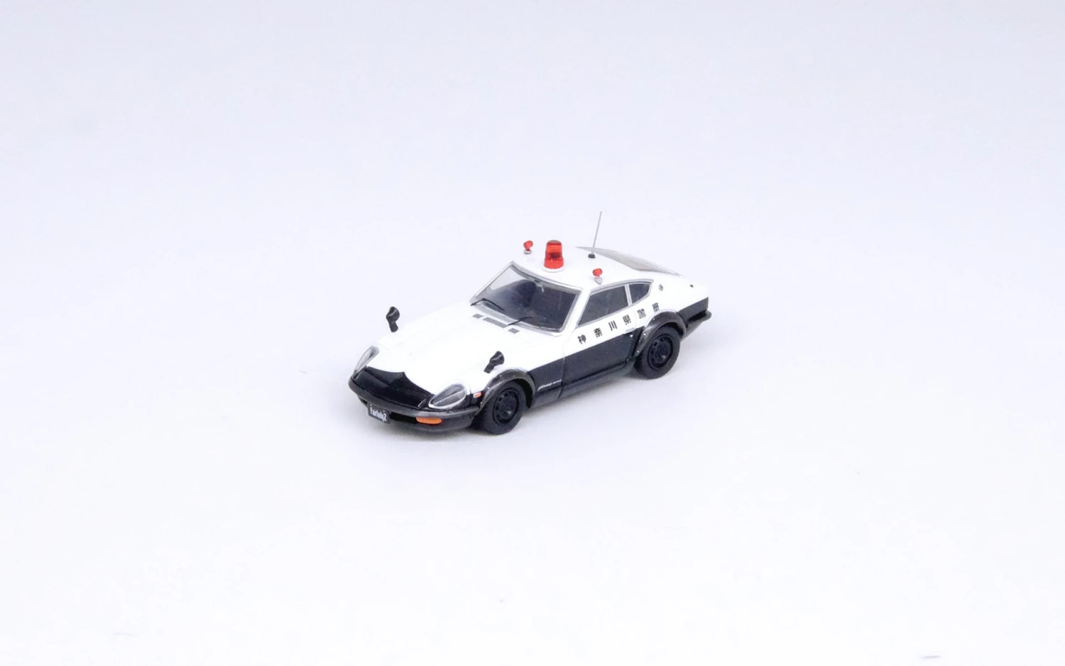 This Nissan Fairlady 240ZG is a meticulously crafted collectible, featuring the iconic Fairlady 240ZG in a unique Japanese police livery. In a compact 1/64 scale, this model captures the fusion of classic JDM style and law enforcement, making it a standout piece for enthusiasts and collectors who appreciate both automotive history and cultural significance.