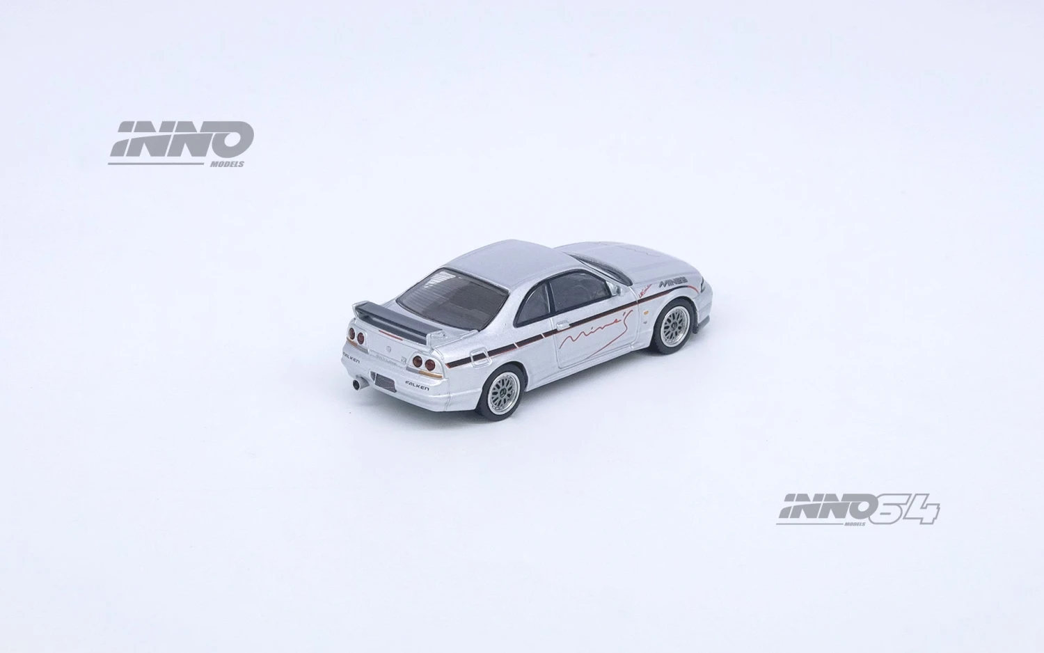 This Nissan Skyline GT-R (R33) is a small, detailed model that shows off a classic car with a modern twist. It looks just like the real thing, with cool modifications, and is painted in a beautiful silver color, capturing the fun and style of custom cars.